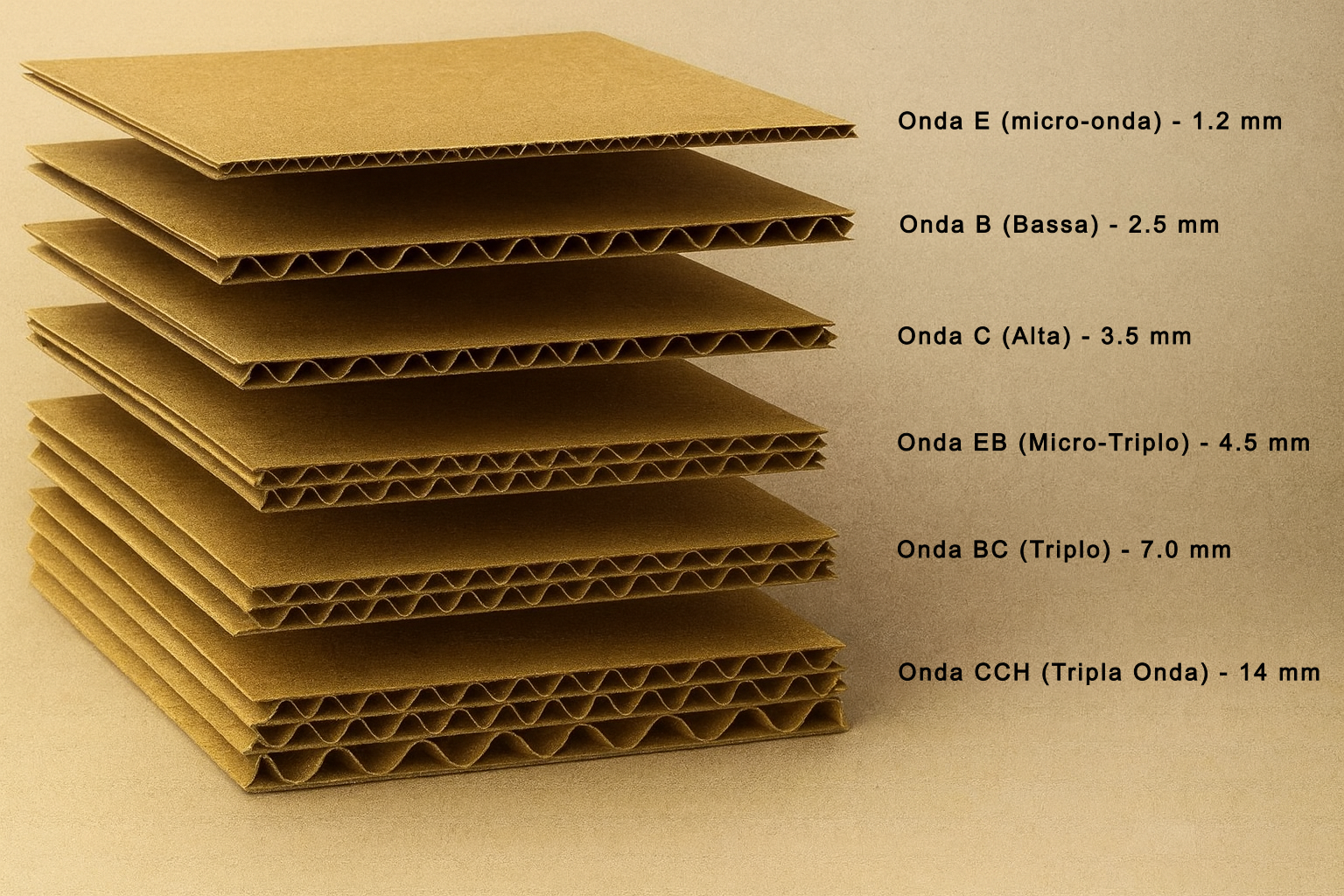 La scelta di onda e carta dipende dalle esigenze specifiche di resistenza, protezione e tipo di imballaggio.