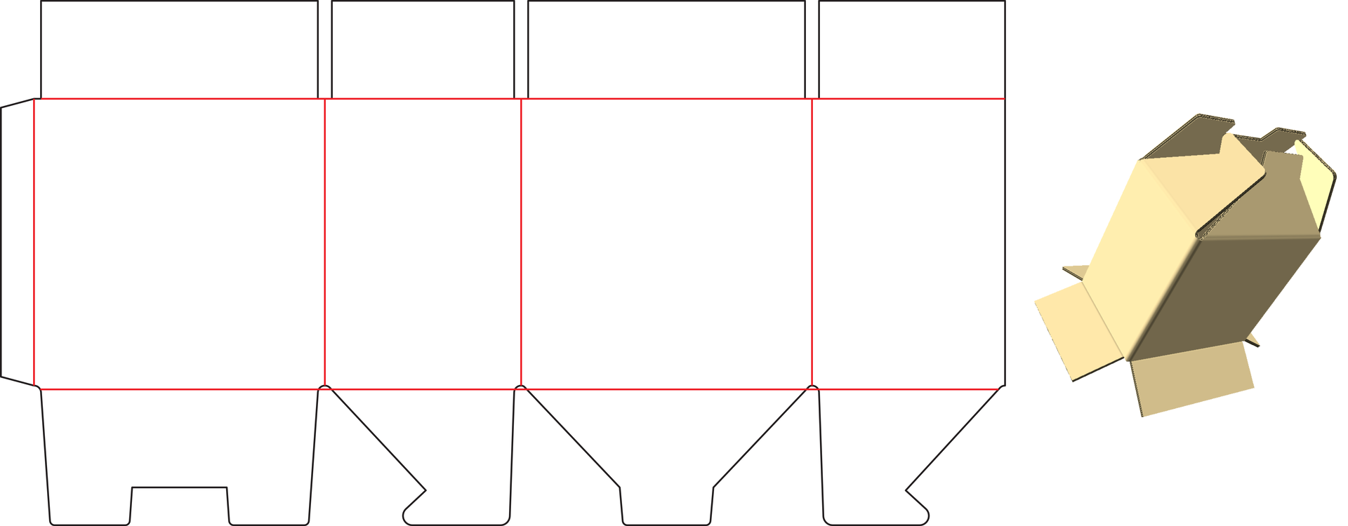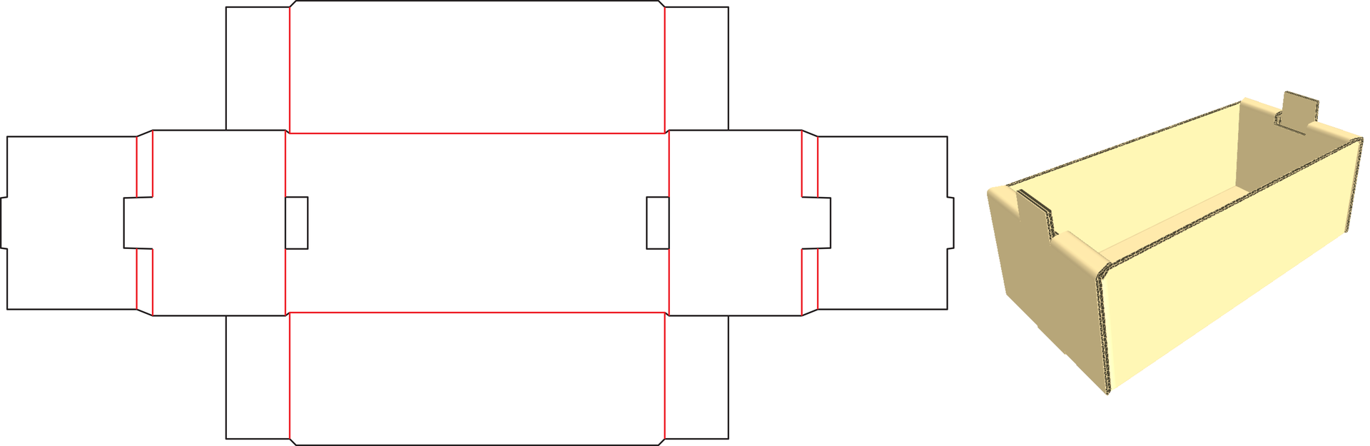 Questo tipo di fustellato, denominato “Wrap-Around”, è progettato per linee di confezionamento automatizzate con la particolarità di offrire un imballaggio che aderisce perfettamente al prodotto imballato.