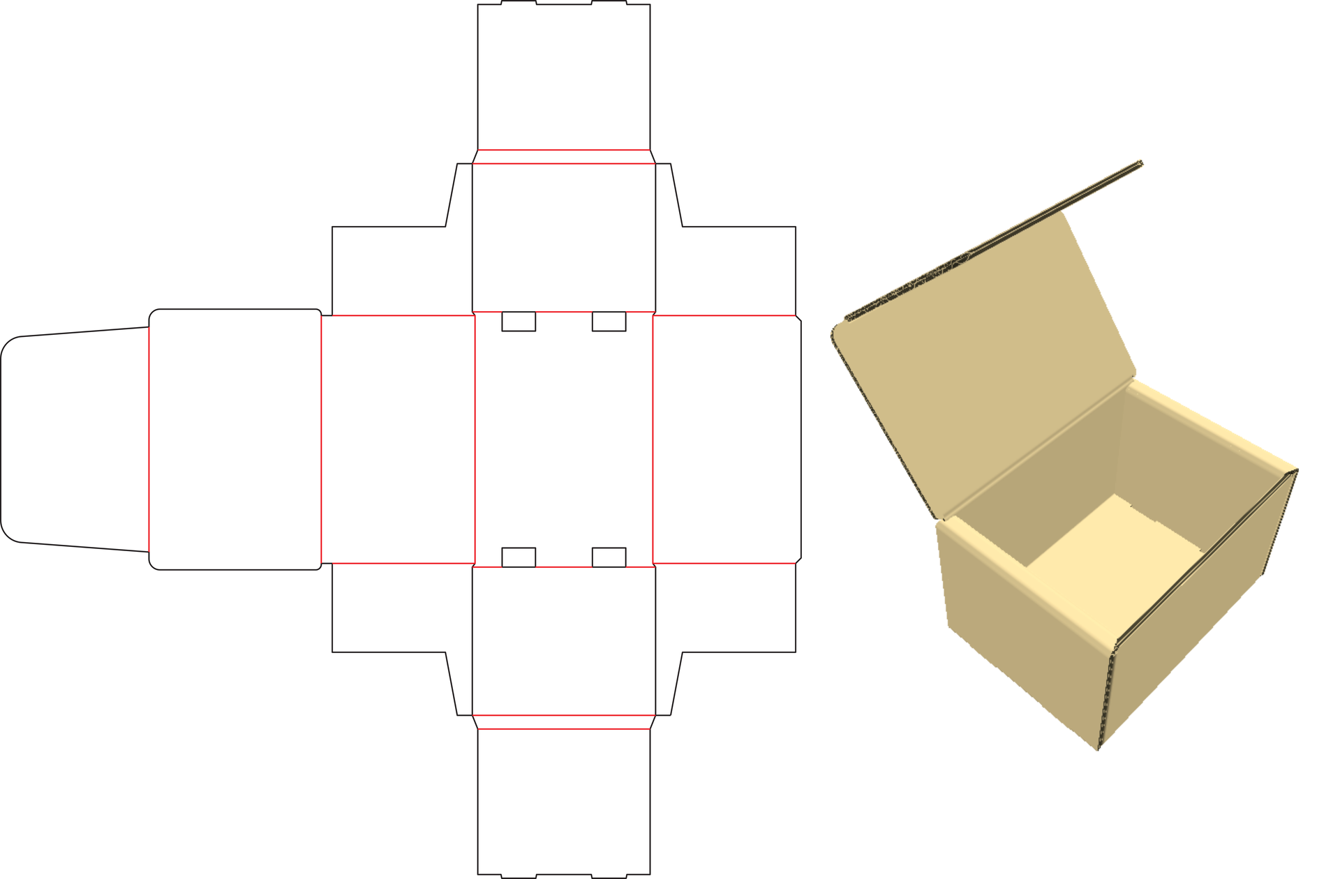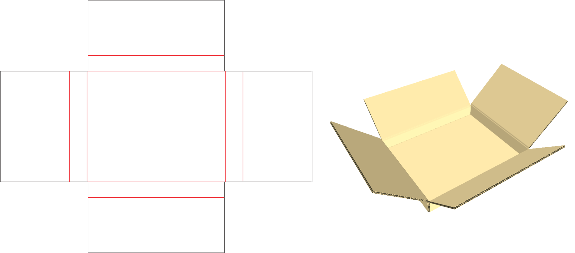 Classica scatola di tipo “Americana”, con falde superiori chiuse in modo tradizionale (nastro adesivo o colla), ma con fondo con chiusura ad incastro; ciò la rende ideale per un montaggio manuale veloce del fondo, senza l’utilizzo di nastro adesivo o colla.